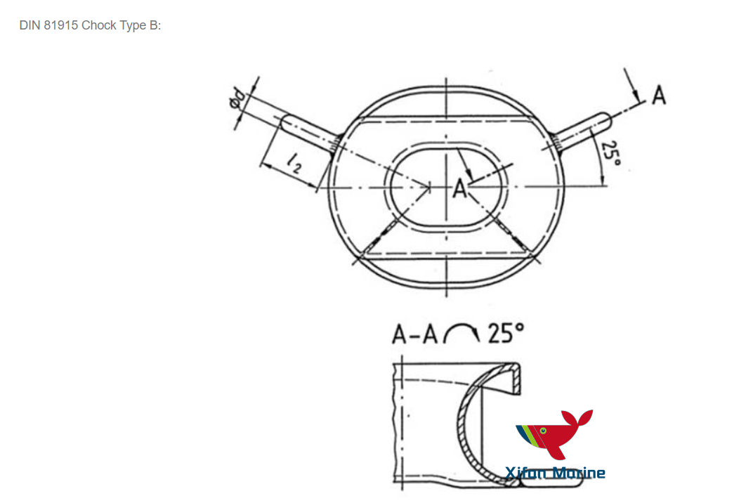 DIN81915 Mooring Chock dibuat menurut Standar Jerman DIN 81915. Panama chock, dipasang di geladak atau benteng, adalah chock tertutup yang digunakan untuk mengontrol posisi tali tambat. Bahan chock adalah GS-38 (bahan 1.0420) menurut DIN1681 (baja tuang). Hanya ada dua pengaku di sekitar panama chock, oleh karena itu SWL dari chock kurang dari iso13728 panama chock. Namun, chock Din81915 juga umum digunakan di seluruh dunia, terutama untuk kapal di Eropa.